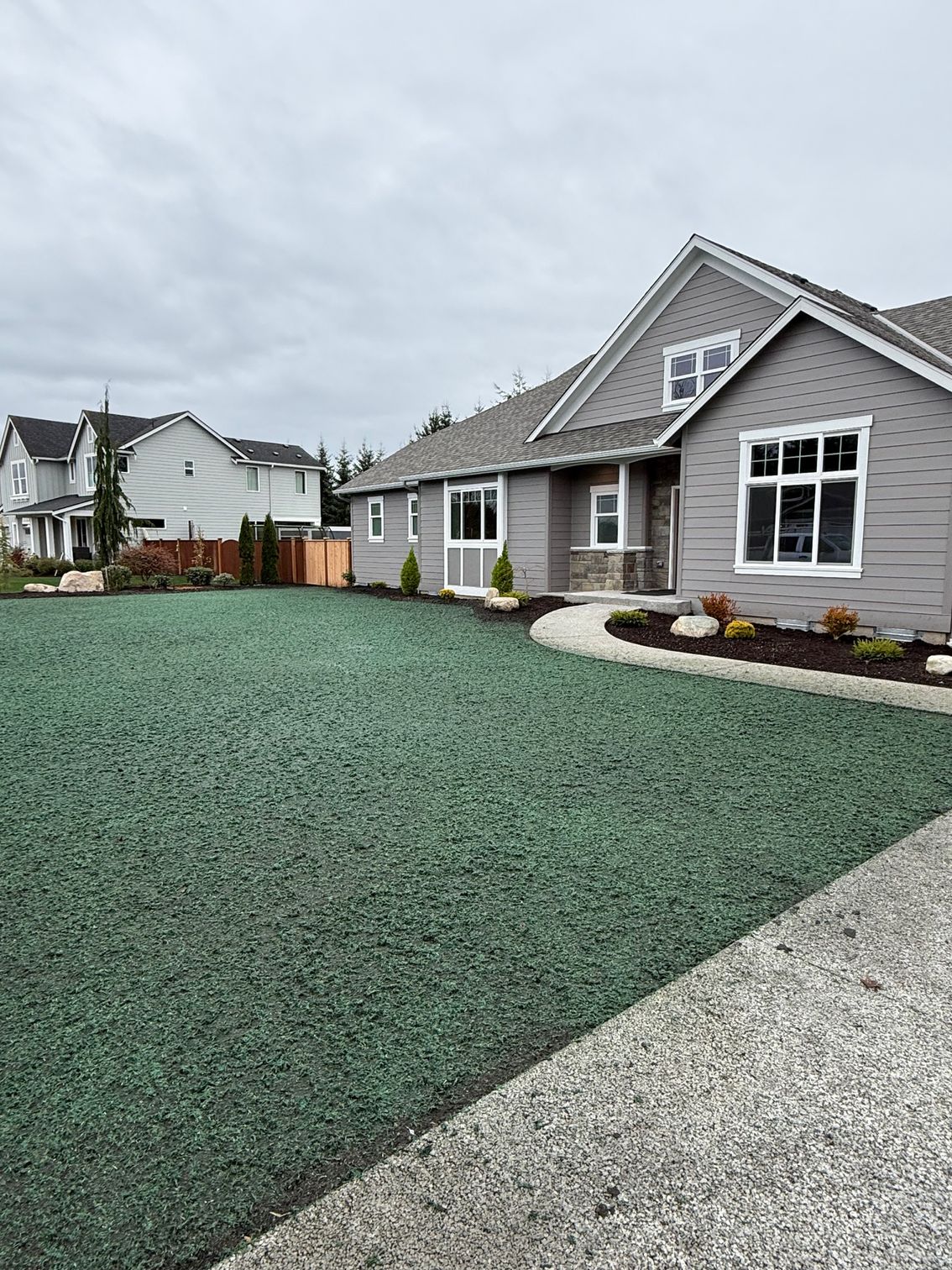 The beginning of a beautiful custom home landscape in Stanwood, WA. The infrastructure is completed, the canvas is stretched, and come summer time we will be back to get the hardscape in, the fun stuff! A job well done.
